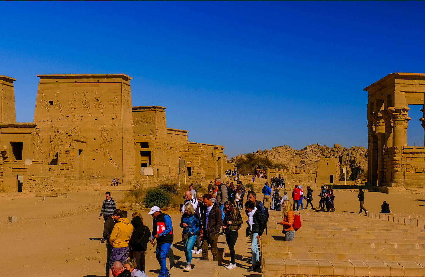 Next, enjoy a short boat ride to Philae Temple on Agilkia Island. Dedicated to the goddess Isis, this temple complex is admired for its graceful columns and detailed reliefs. Relocated stone by stone following the construction of the dam, it remains one of Egypt’s most beautiful ancient sites.