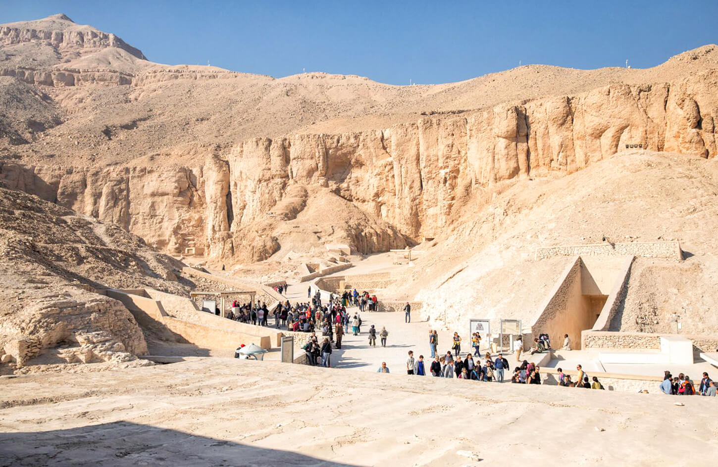 Start at the Valley of the Kings, where elaborately decorated tombs of New Kingdom pharaohs, including Tutankhamun, are carved deep into the desert hills.